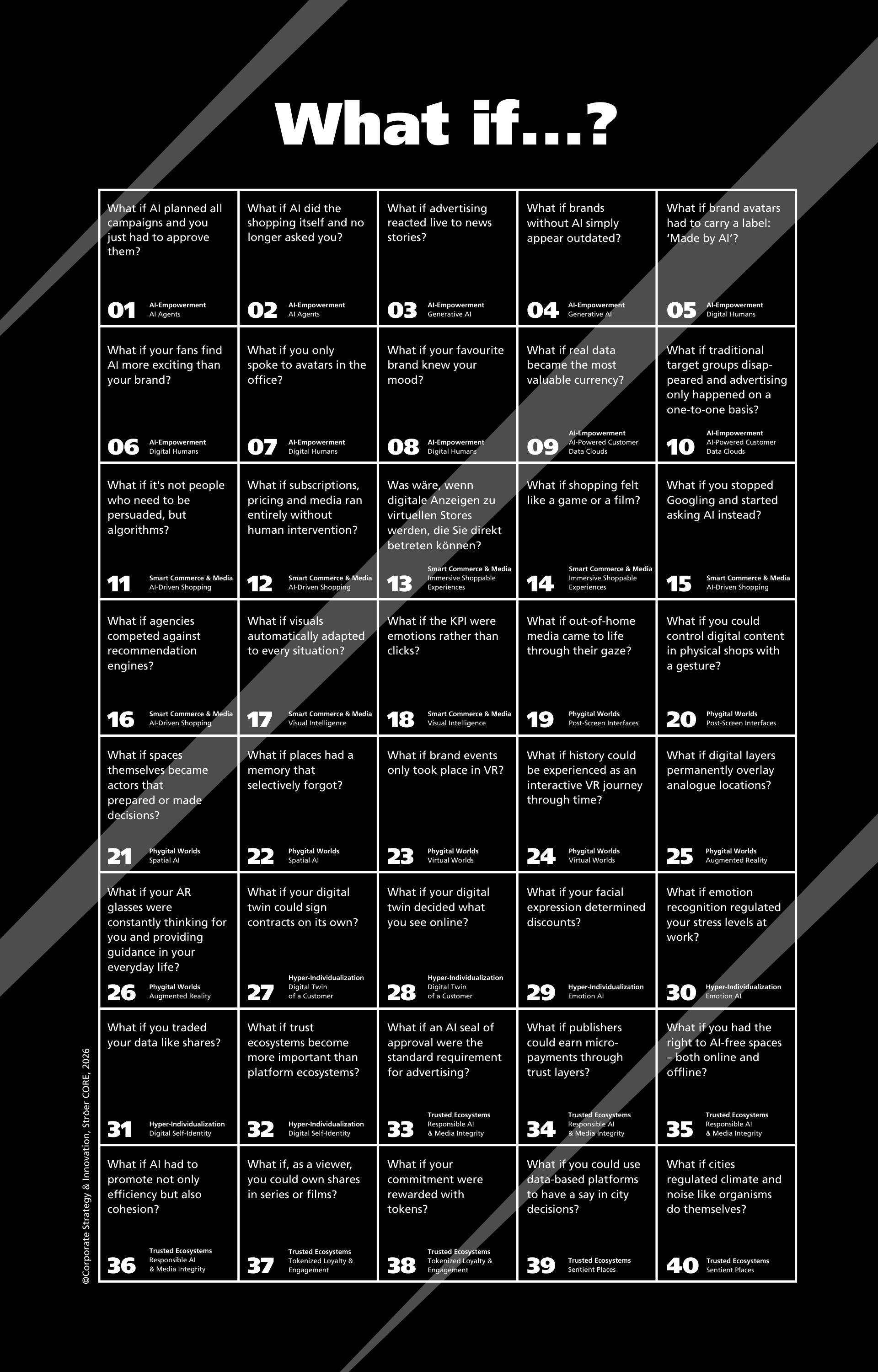 The forty questions contained in the book are thematically linked to macro trends and delve into the application level. In uncertain times, simple answers are particularly tempting. The “what if” question deliberately rejects these and instead opens up new perspectives and points of view.