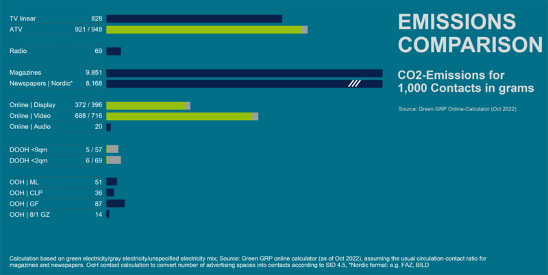 Different communication channels fulfil different tasks, address audiences in different ways and also vary in their reach and impact. The media mix therefore depends on a suitable composition and balance of the individual channels. In addition to the usual performance KPIs, the sustainability KPI is becoming an increasingly important factor for advertising clients.