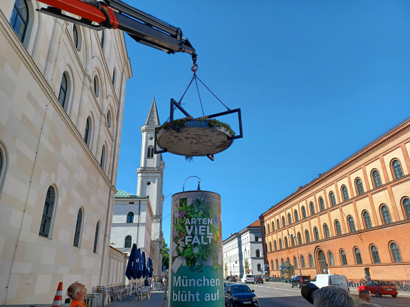 In einem Pilotprojekt begrünt Ströer insgesamt zehn Litfaßsäulen im Münchner Stadtgebiet. München ist eine der am stärksten versiegelten Städte Deutschlands. Nach Auswertungen des Referats für Klima und Umwelt liegt der Versiegelungsgrad bei 44 Prozent. Das Projekt trägt dazu bei, die Stadt stärker zu begrünen und so umzugestalten, dass sich München nicht noch viel stärker aufheizt und wertvolles Regenwasser verloren geht.