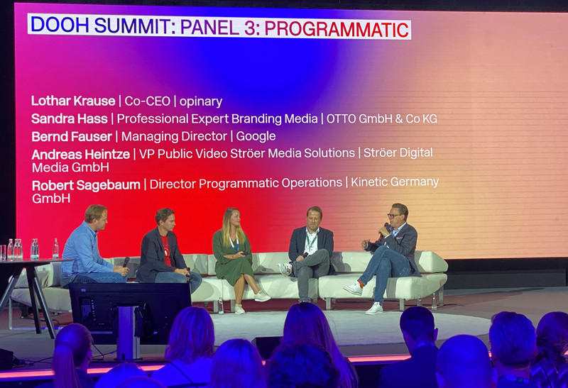 Das dritte und letzte Panel widmete sich dem Themenkomplex Programmatic & Daten. Über die „digitale Logik“, die den Netzwerken zugrunde liegt, bieten Ströer, Goldbach und Wall die Möglichkeiten einer passenden Zielgruppenansprache und einer granularen Aussteuerbarkeit im öffentlichen Raum. Damit verbindet DOOH die Reichweite der Außenwerbung und die Flexibilität eines digitalen Mediums. Dr. Bernd Fauser von Google, Sandra Haas von Otto, Robert Sagebaum von Kinetic, und Andreas Heintze von Ströer blickten auf die Technologie- und Targeting-Optionen von DOOH und die Verbesserung der Angebotsflexibilität.