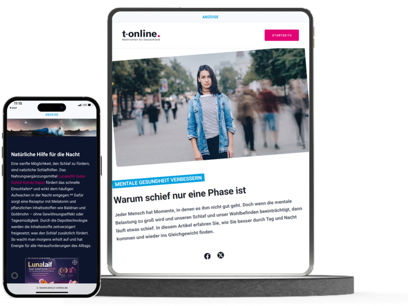 Tiefe durch Content: Native-Formate geben Raum, Dinge zu erklären, einzuordnen oder alltagsnah zu erzählen. Das zahlt besonders auf Themen ein, die entweder emotional sind (Wellness) oder erklärungsbedürftig (mentale Gesundheit).